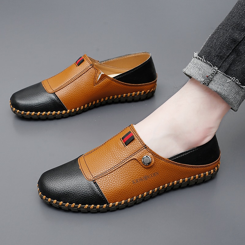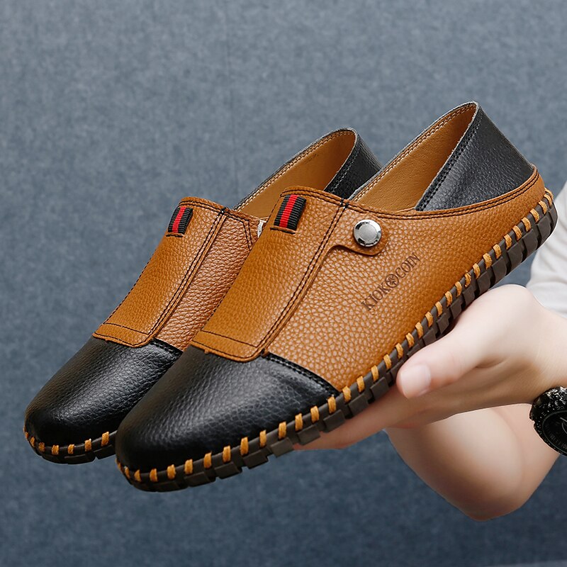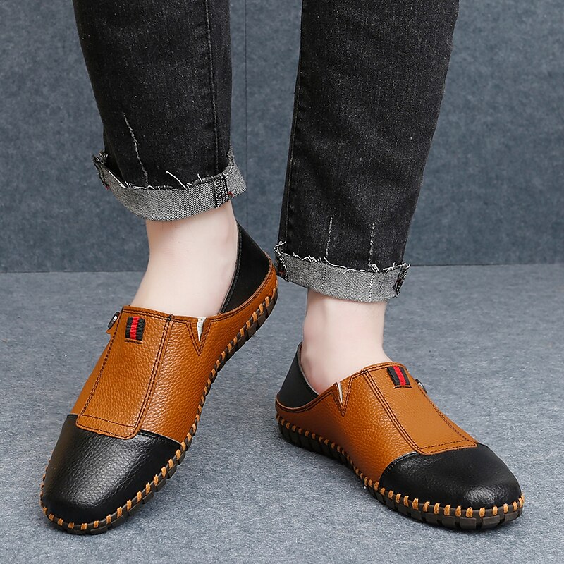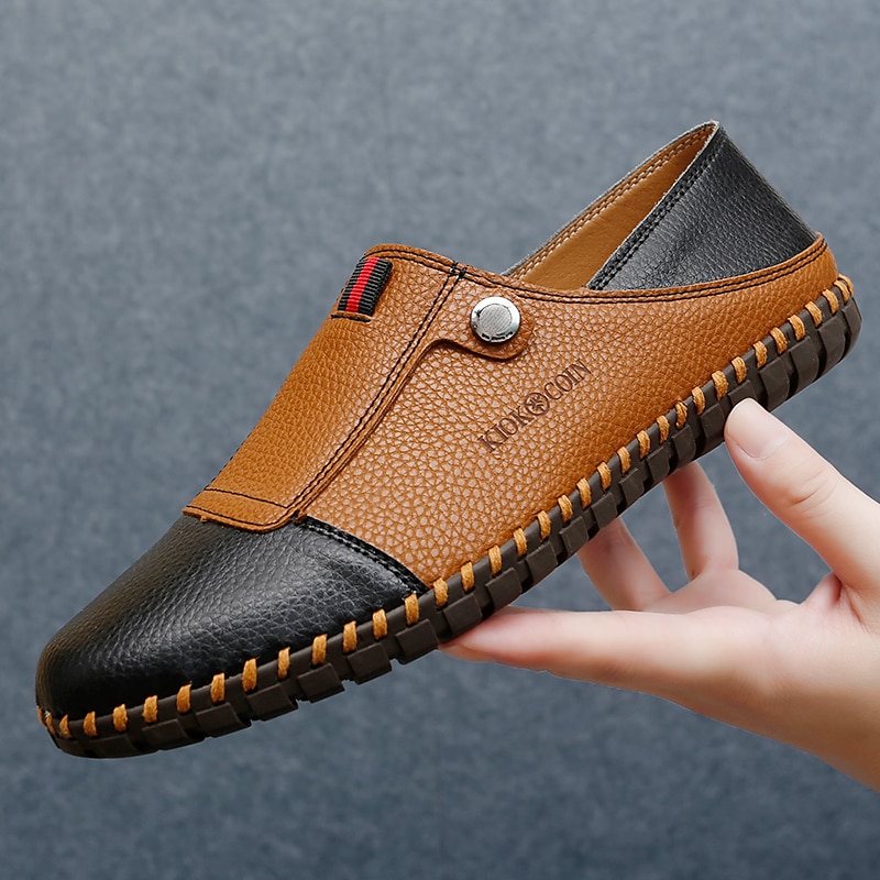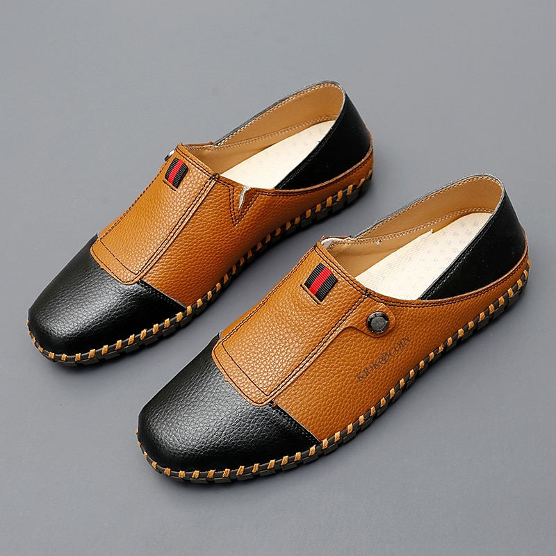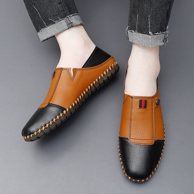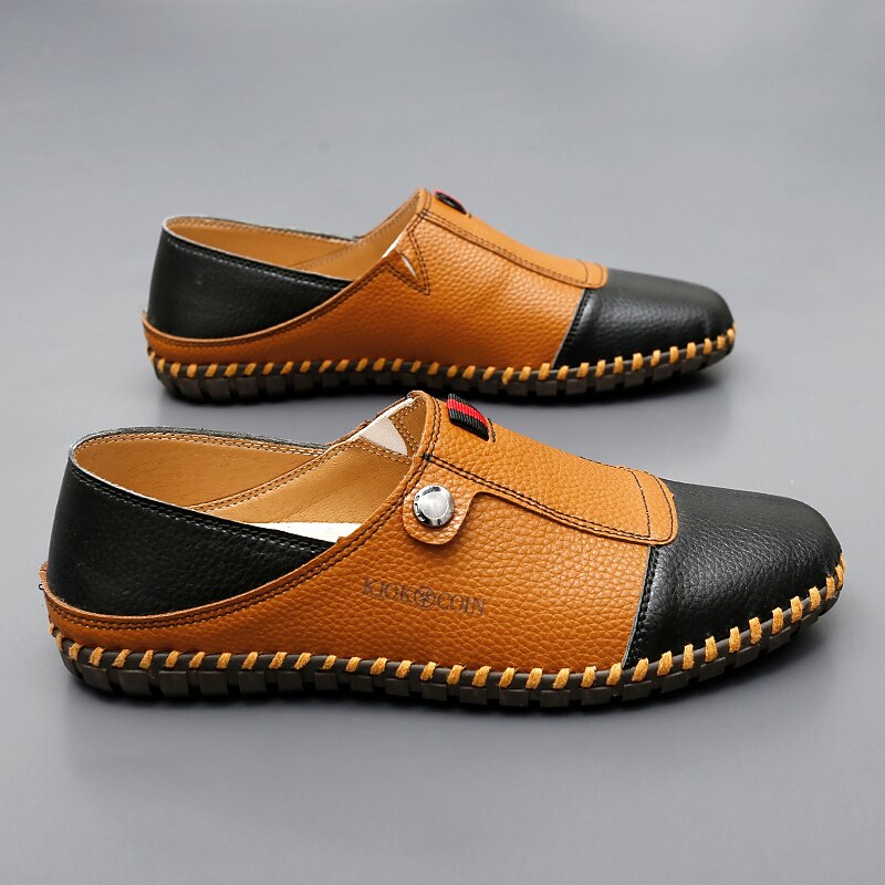 HOT ! Men's Casual Leather Loafers – Slip-On Two-Tone Driving Shoes with Non-Slip Sole for Daily Wear
