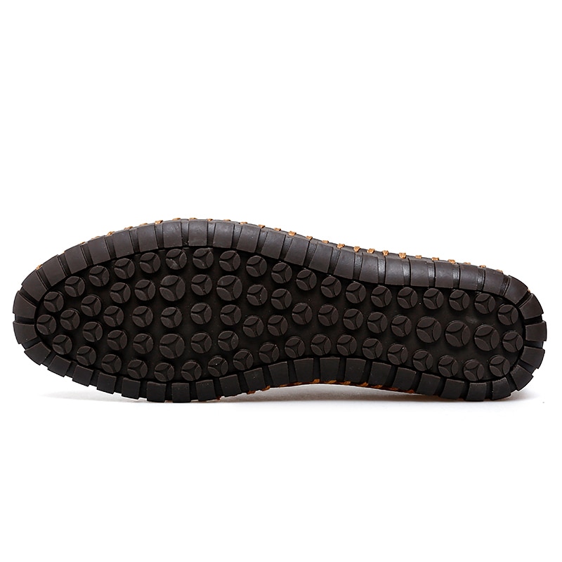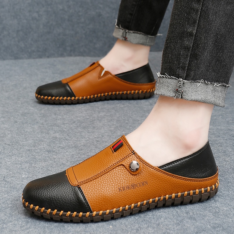 Highlights [Fabric] : Crafted with premium leather, these men's loafers boast a combination of rich, pebbled textures that provide both durability and a luxurious feel. The soft leather construction ensures maximum comfort during wear. [Fit] : Designed in a classic round toe style, these loafers and slip-ons offer a relaxed fit that's ideal for all-day wear. The slip-on design allows for easy on-and-off convenience, perfect for daily use. [Design Highlights] : Featuring intricate hand stitching and a decorative button on the upper, these shoes embody a vintage and handcrafted appeal. A subtle brand embossment adds to their sophisticated allure, while the rubber sole ensures a secure grip and slip resistance. [Occasions] : Ideal for a variety of occasions, these loafers are a perfect choice for casual outings, daily wear, or even semi-formal events. Their blend of elegance and practicality makes them suitable for both indoor and outdoor activities, offering a versatile option for any wardrobe. [Size Notice] : Available in sizes ranging from US7 (EU39, UK6) to US12 (EU45, UK11), these loafers are true to standard sizing, making it easy to select your usual size for the perfect fit.