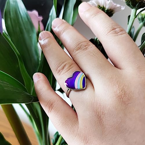 Cute Rainbow Heart Color Change Mood Ring For Girls Size Adjustable 7