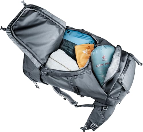 • USE CASE: Cleverly designed 60+10-liter-by-volume women’s travel backpack is equipped with the Contact back system and a flexi spring steel frame to effectively distribute carrying loads to reduce strain on the back. It includes an integrated day pack that can be worn on the front, clipped to the main pack's shoulder straps, or used separately for day trips, and a transport cover to protect the pack from knocks and scrapes during transit that doubles as a rain cover. Ideal for hiking and travel.