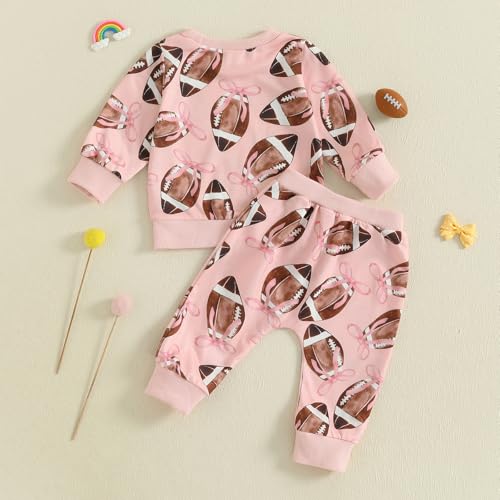 Toddler Baby Girl Football Outfit Rugby Bow Long Sleeve Sweatshirt and Pants Set 2Pcs Game Day Fall Winter Clothes 2