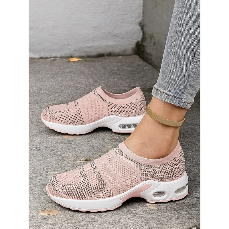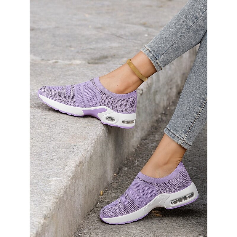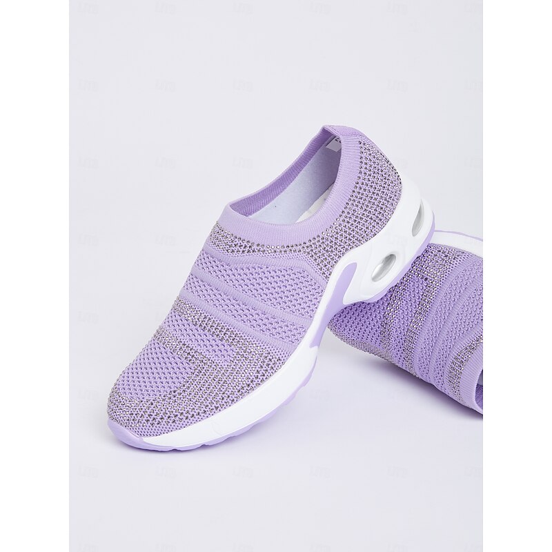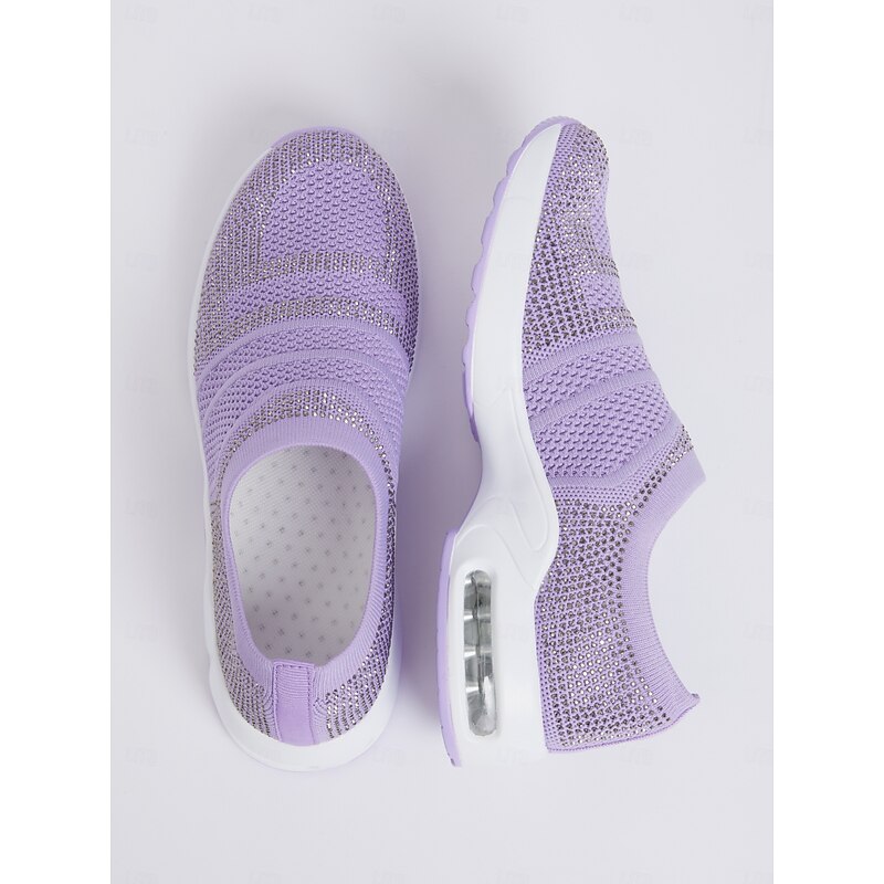Highlights [Upper Materials] : Made from high-quality Flyknit material, these sneakers offer exceptional breathability and flexibility, ensuring comfort during extended wear. The intricate weave of the Flyknit fabric promotes excellent ventilation, keeping your feet cool and dry throughout the day. [Design and Fit] : These slip-on sneakers are crafted with a minimalistic yet stylish design. The convenient loafer closure allows for easy on-and-off wear while providing a secure fit. The light purple color adds a trendy touch, making it a versatile addition to your casual wardrobe. [Design Highlights] : Adorned with sparkling rhinestones, these sneakers stand out with an elegant touch of glamour. The flat heel design combined with a supportive air cushion offers superior comfort and shock absorption, perfect for those who value both style and functionality. [Occasions] : Ideal for daily use, these sneakers are perfect for walking, casual outings, or complementing your favorite laid-back outfits. Whether you're heading to a weekend gathering or running errands, they are a practical choice for various activities. [Size Range] : Available in a wide range of sizes, including US6 to US9.5-10, ensuring a suitable fit for different foot measurements. These sneakers cater to a variety of preferences, providing both comfort and style for everyday wear.