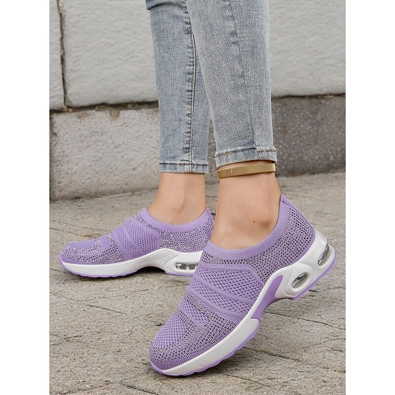 HOT ! Women's Lightweight Purple Slip-On Sneakers with Rhinestone Detailing – Comfortable Air Cushion Sole for Walking and Casual Wear