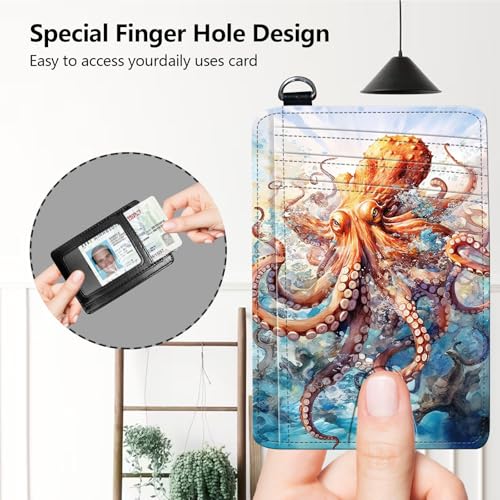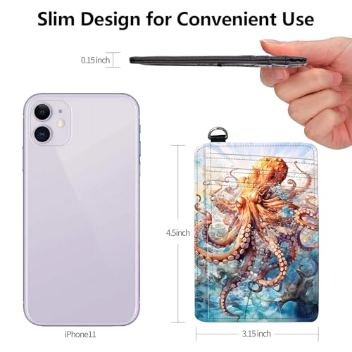 Slim RFID Blocking Card Holder Wallet with Wrist Strap - Minimalist Front Pocket Wallet, Octopus 02 Design, PU Leathe, for Men & Women, Ideal for Travel & Gifts 4