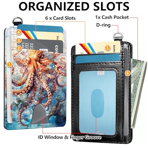 Slim RFID Blocking Card Holder Wallet with Wrist Strap - Minimalist Front Pocket Wallet, Octopus 02 Design, PU Leathe, for Men & Women, Ideal for Travel & Gifts 6