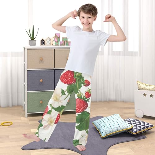 Strawberry with Florals Boys Long Pants Soft Trousers Elastic Waist Kids Lounge Bottoms with Pockets S-XL 6