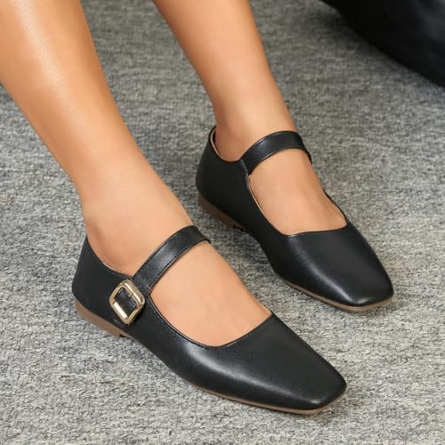 • Perfect Design: Women's mary jane ballet flats shoes with closed square toe and adjustable buckle straps for easy wear on/off.