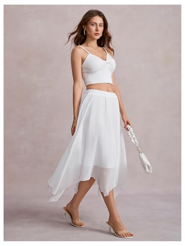 HOT ! Verdusa Women's Asymmetrical Hem Elastic Waist Chiffon Flowy Long Skirt