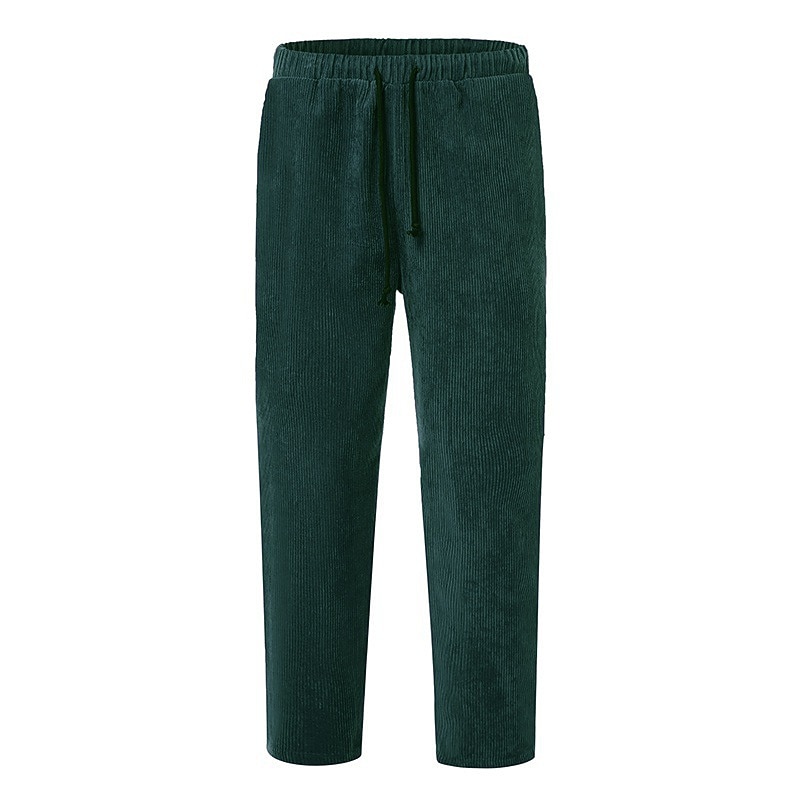Men's Corduroy Pants Winter Pants Trousers Cropped Pants Casual Pants Drawstring Elastic Waist Straight Leg Solid Color Comfort Warm Casual Daily Streetwear Sports Fashion Loose Fit Black Blue 10