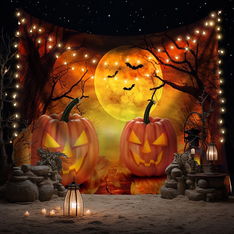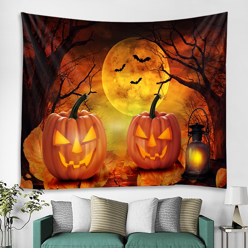 HOT ! Halloween Decorations Tapestry Jack O Lantern Pumpkin Decor Wall Art Large Hanging Tapestry Mural Decor Photograph Backdrop Blanket Curtain Home Bedroom Living Room Bat Witch Haunted Scary Graveyard