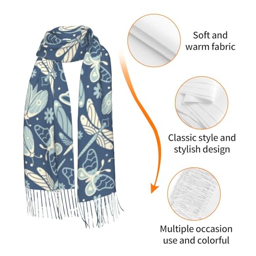 VOSERY Womens Scarf Pashmina Shawls Wraps - Dragonfly Moth Butterfly Fashion Scarves Fall Winter Large Blanket Scarf 2