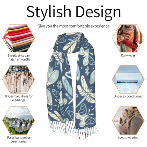 VOSERY Womens Scarf Pashmina Shawls Wraps - Dragonfly Moth Butterfly Fashion Scarves Fall Winter Large Blanket Scarf 5