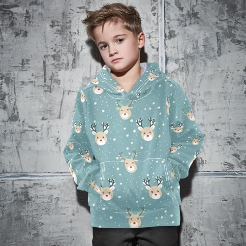 Kids Hoodies Sweaters Christmas Xmas Elk Deer Hooded Sweatshirts with Big Pockets for Boys Girls B0400275 4