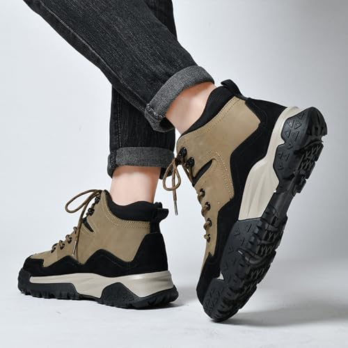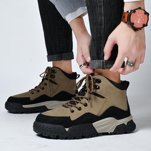 • 【Casual Style】Men's hiking ankle boots are made with exquisite craftsmanship, the anti-collision toe is sturdy and stylish, and the upper pattern is designed with stitching, which is casual and fashionable. The widened shoe last allows you to fit more comfortably, and the lace-up design can better stabilize your feet, making the shoes and feet perfectly combined, ensuring a secure fit, without worrying about accidents during outdoor activities.