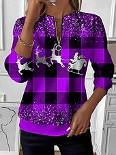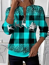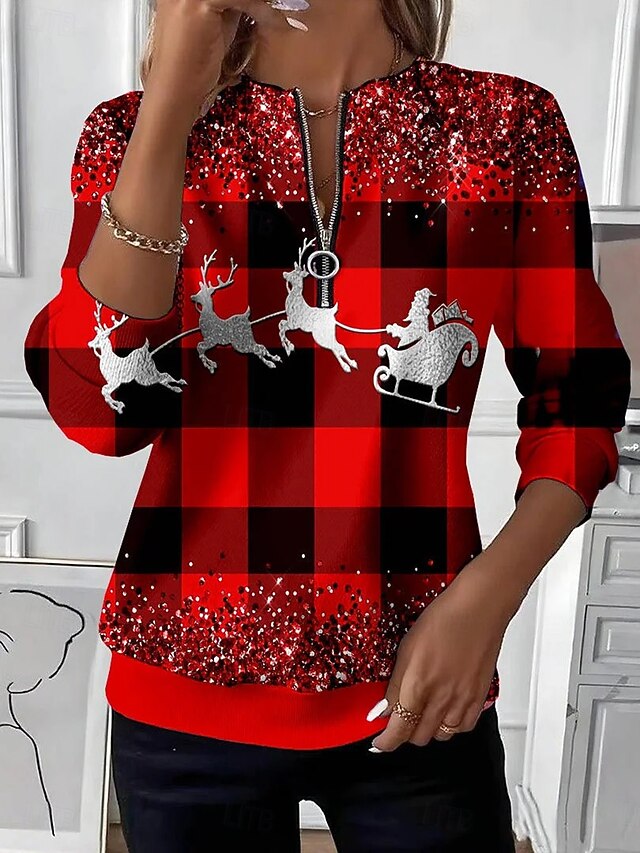 More information about Women's Pullover Sweatshirt Zip Up Sweatshirts Graphic Plaid Christmas Fashion Casual Long Sleeve Crew Neck Regular Tops Street Dailywear Casual Zipper Print Red Blue Purple Green Fall Winter