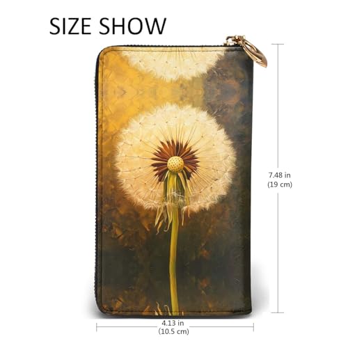 Stylish Dandelions in the sun Printing Leather Wallet - Long Clutch for Women, RDurable Material, 12 Card Slots, Zipper Compartments 5