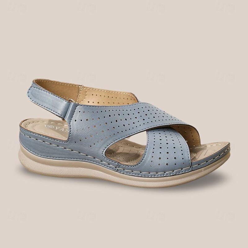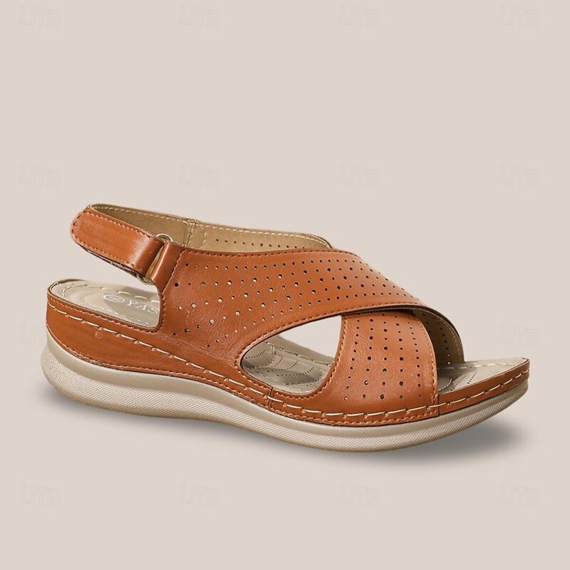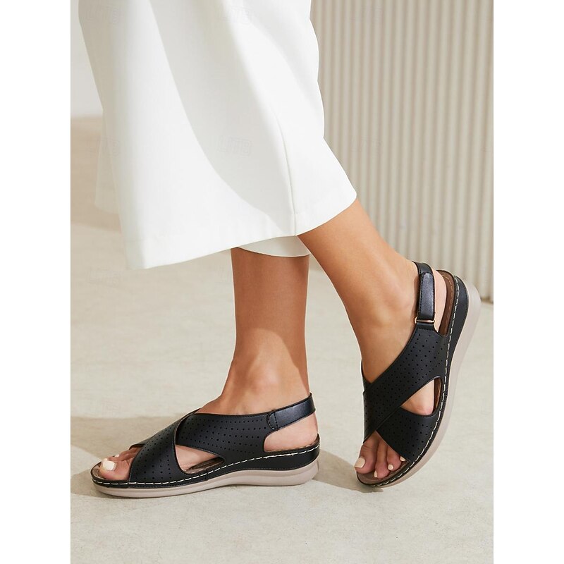 Highlights [Fabric] : Expertly designed with microbial leather, the upper of these sandals provides superior breathability and comfort. The material is soft yet durable, ensuring they stand up to everyday wear. [Shape] : These wedge sandals offer a comfortable fit with a heel height ranging from 2 to 3 inches, providing both style and support. The overall design is geared towards comfort, making them suitable for prolonged wear. [Design Highlights] : Featuring a sophisticated perforated leather upper, these sandals include crossed straps for a secure fit. The adjustable slingback strap allows for easy wearability and personalization, while the open-toe design enhances breathability. Subtle stitching accents add an elegant touch to this versatile footwear. [Occasions] : Ideal for casual summer outings, these sandals are perfect for everyday wear, whether you’re strolling in a park or heading to a brunch with friends. They offer both style and practicality, making them a go-to choice for warm weather events. [Size Notice] : Available in a wide range of sizes from US6/EU36/UK4 to US12/EU42/UK10, ensuring a fit for various foot sizes.