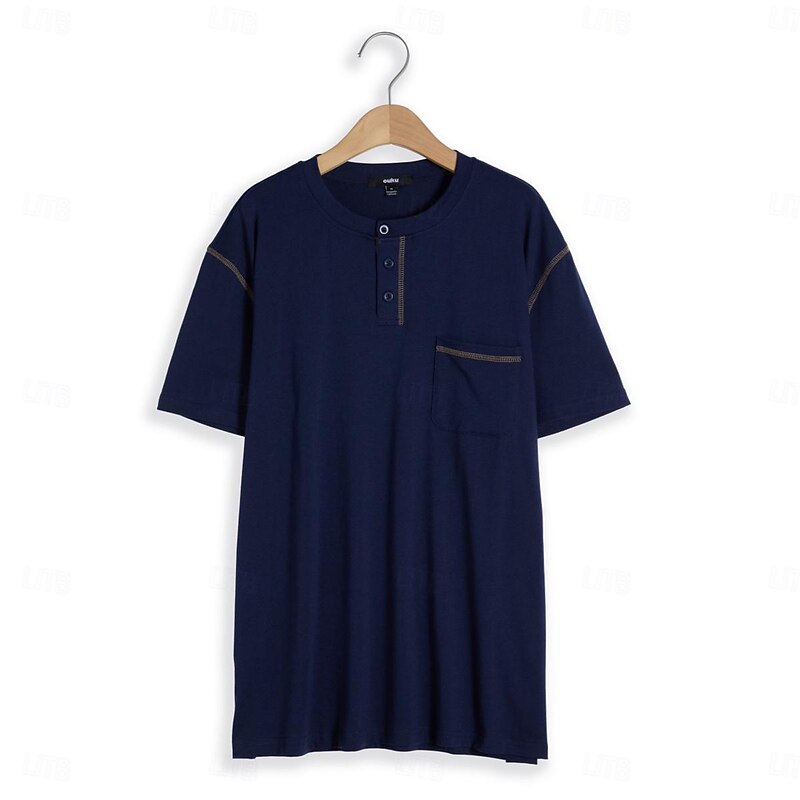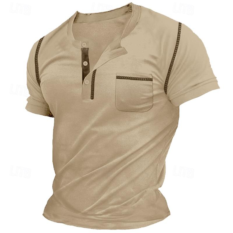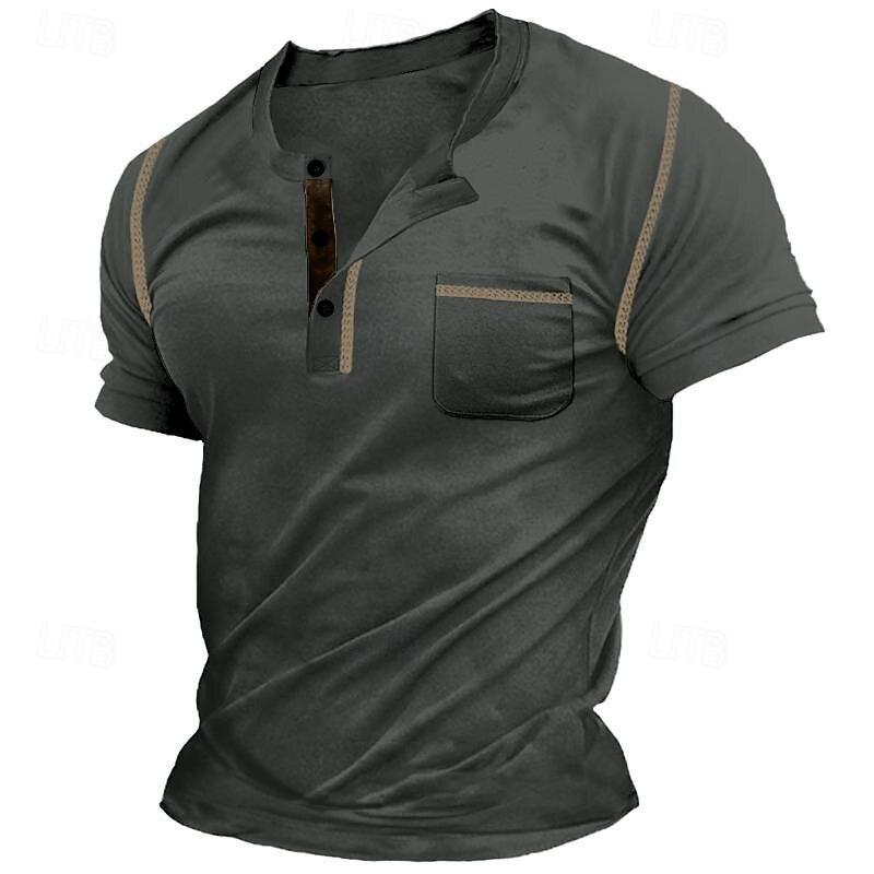 HOT ! Men's Henley Shirt Tee Top Plain Henley Street Vacation Short Sleeves Pocket Vintage Style Clothing Apparel Fashion Designer Basic