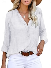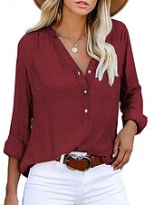 More information about Women's Shirt Linen-Inspired Shirts Button Up Blouse Solid Color Stylish Casual Long Sleeve Notched Neck Regular Tops Daily Buttons White Red Summer Spring