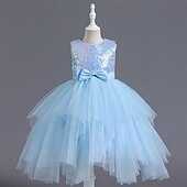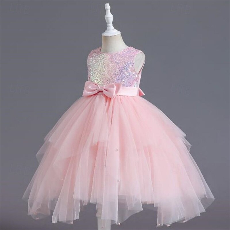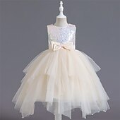 More information about Flower Girl Dress Kid's Girls' Princess Dress Performance Wedding Party Elegant Beautiful Sequins Mesh Solid Color Sleeveless Crew Neck Champagne Pink 4 years+
