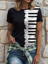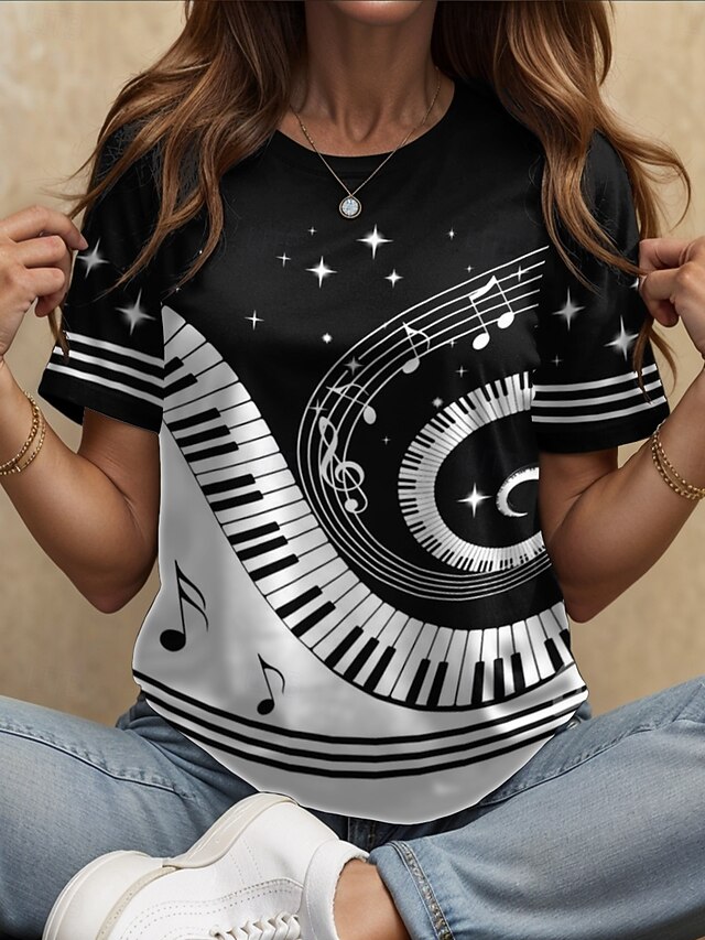 More information about Music Festival Women's T Shirt Graphic Geometric Vintage Stylish Classic Short Sleeve Crew Neck Round Neck Regular Tops Daily Weekend Print Black and White White / Black Summer Spring