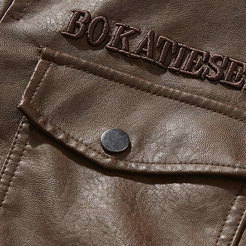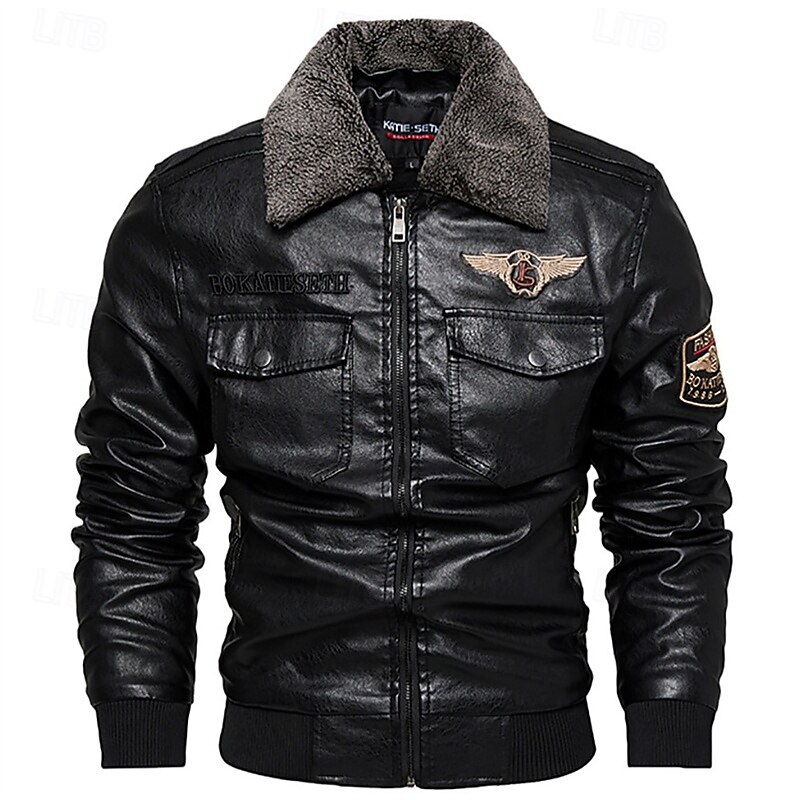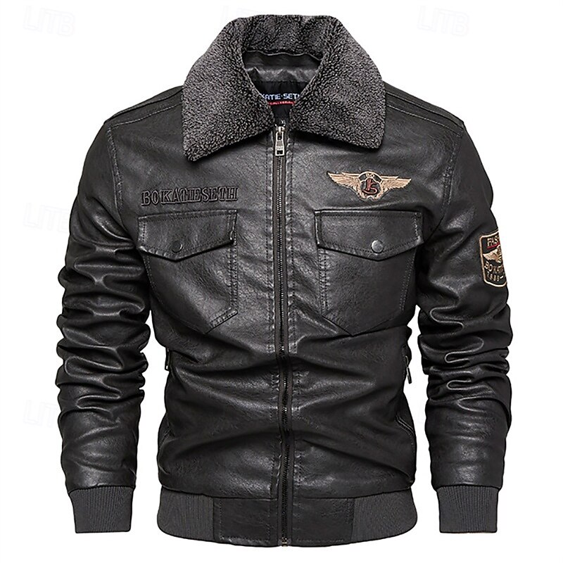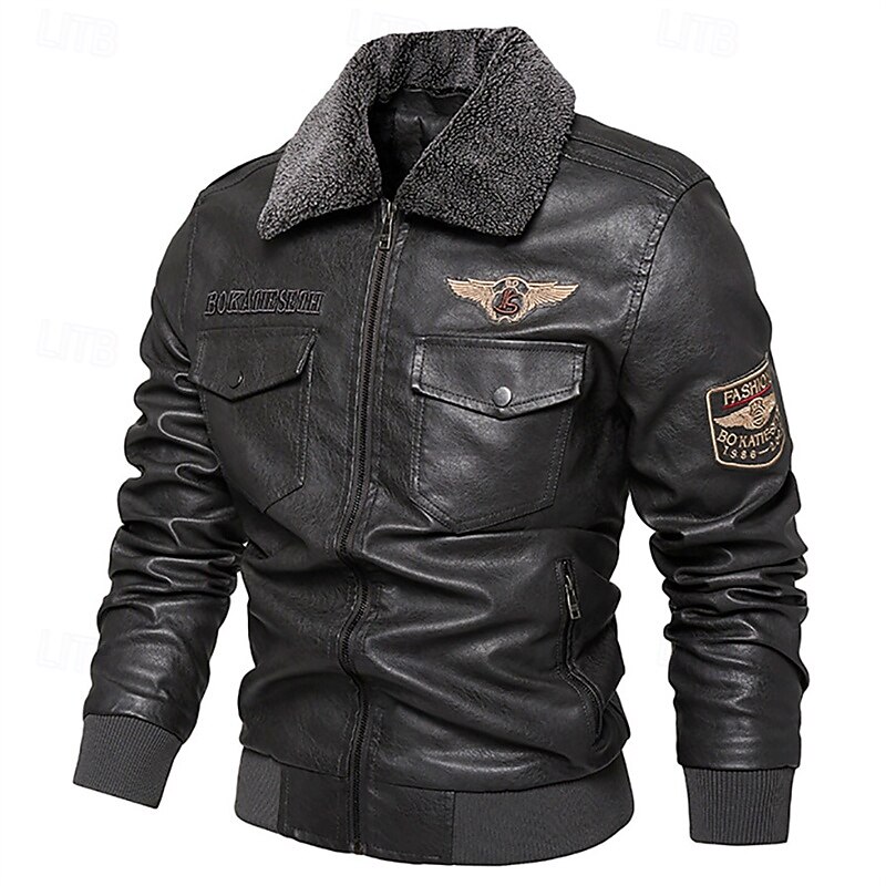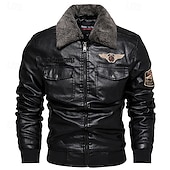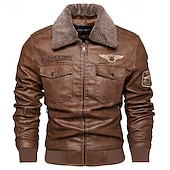 More information about Men's Faux Leather Jacket Biker Jacket Motorcycle Jacket Vacation Daily Windproof Warm Pocket Fleece Winter Plain Fashion Classic Lapel Regular Faux Leather Black Coffee Gray Jacket