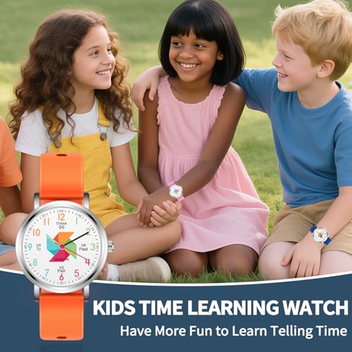 Blisshour Kids Watch Analog Waterproof, Pinwheel Learning Watch for Kids 8-12, Teacher Watches for Boys Ages 5-7 6-8, Easy to Read Educational Girls Watches Style A Orange 7