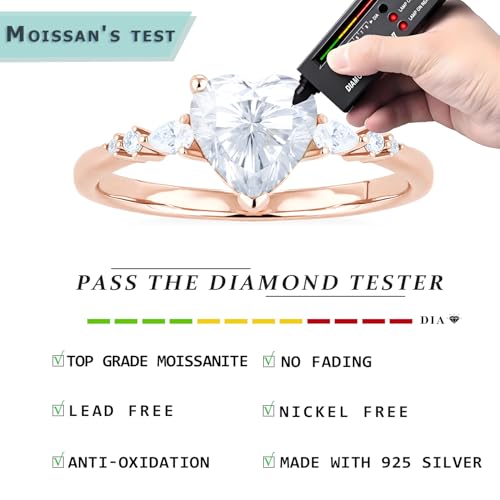 1CT Heart-shaped Moissanite Ring for Women Real Moissanite Engagement Ring Travel Wedding Bands for Women 925 Sterling Silver Ring Eternity Promise Rings for Her Wedding Rings Size 3-10 2