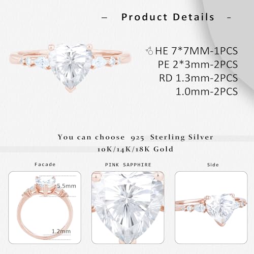 More information about 1CT Heart-shaped Moissanite Ring for Women Real Moissanite Engagement Ring Travel Wedding Bands for Women 925 Sterling Silver Ring Eternity Promise Rings for Her Wedding Rings Size 3-10