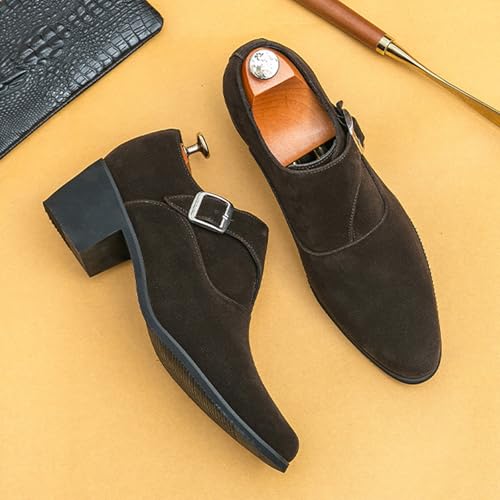 NELSBREXMen'S Suede Leather Chunky Heel Monk Strap Oxford Shoes Fashionable Pointed Toe Non-Slip Slip-On Block Heel Loafers Formal Business Dress Low top Chelsea Boots 6