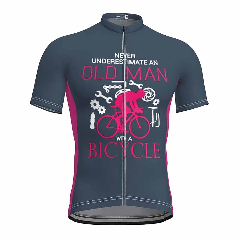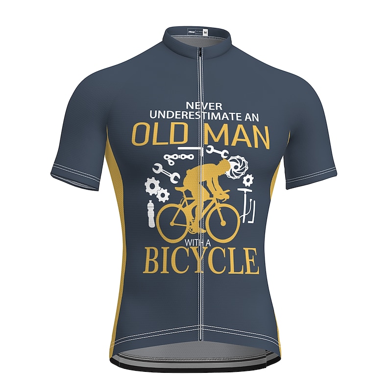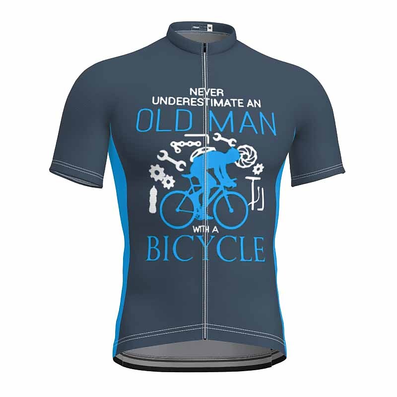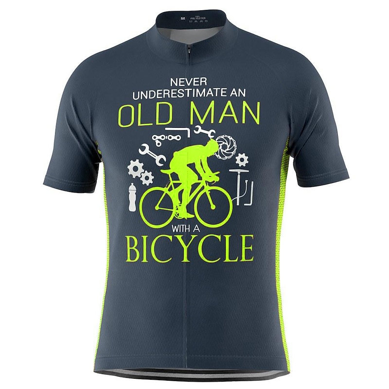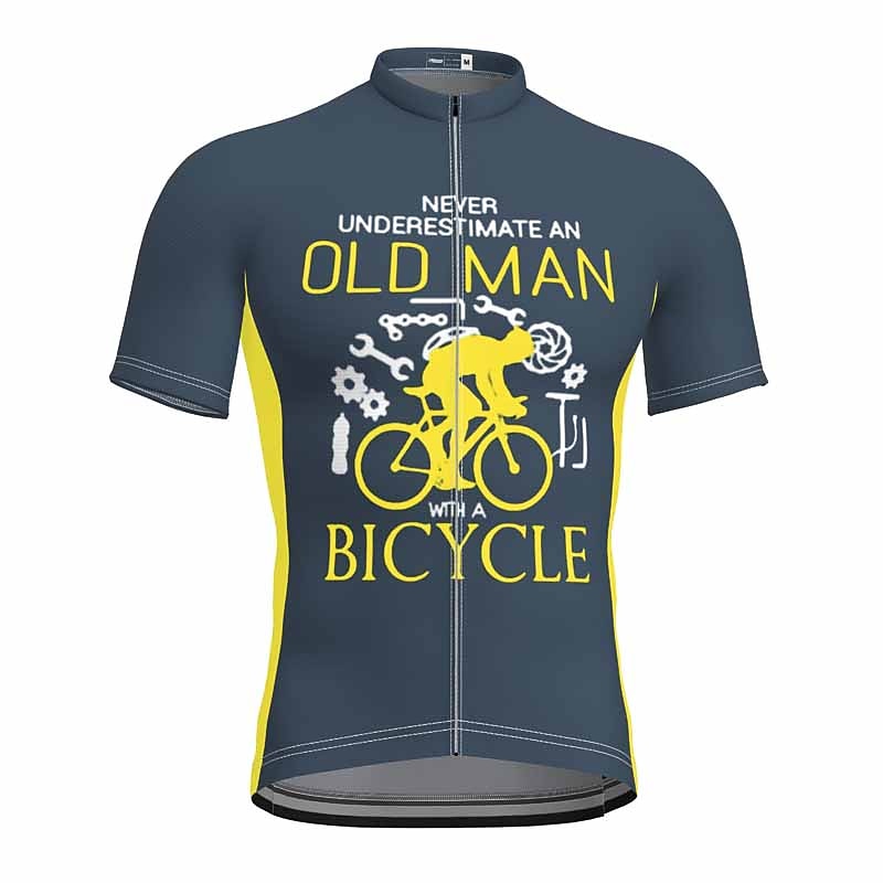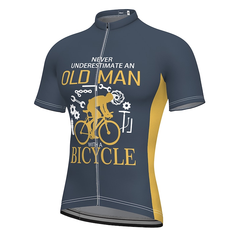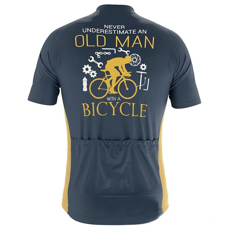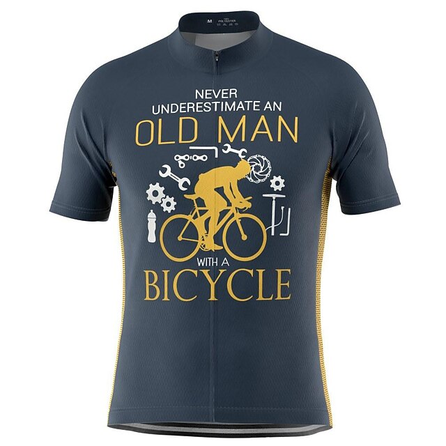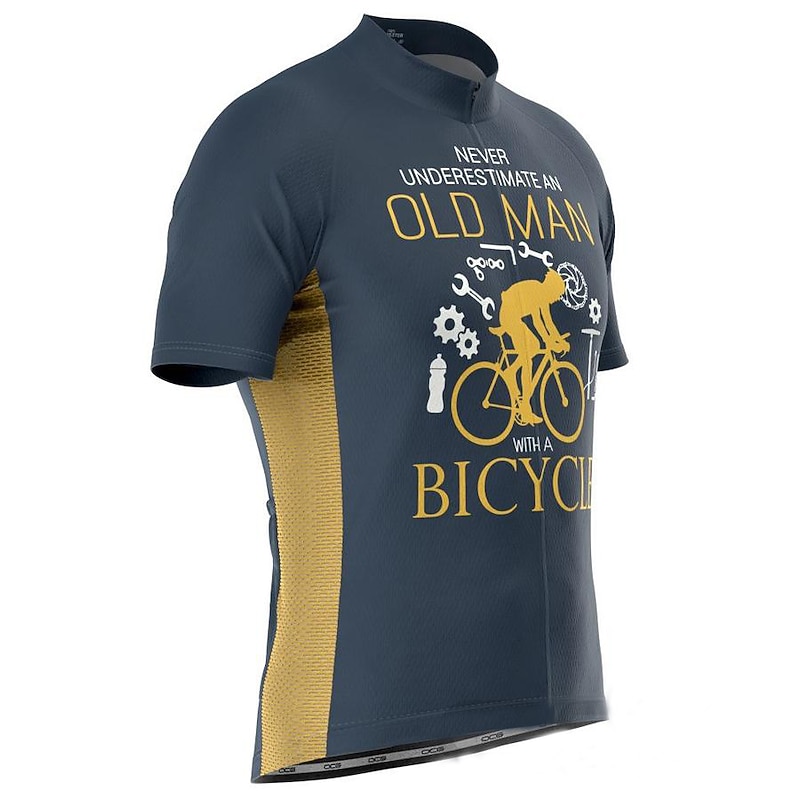 21Grams Old Man Men's Short Sleeve Cycling Jersey Summer Polyester Funny Bike Jersey Top Mountain Bike MTB Road Bike Cycling Breathable Quick Dry Moisture Wicking Blue+Orange Blue+Yellow Blue+Pink 37