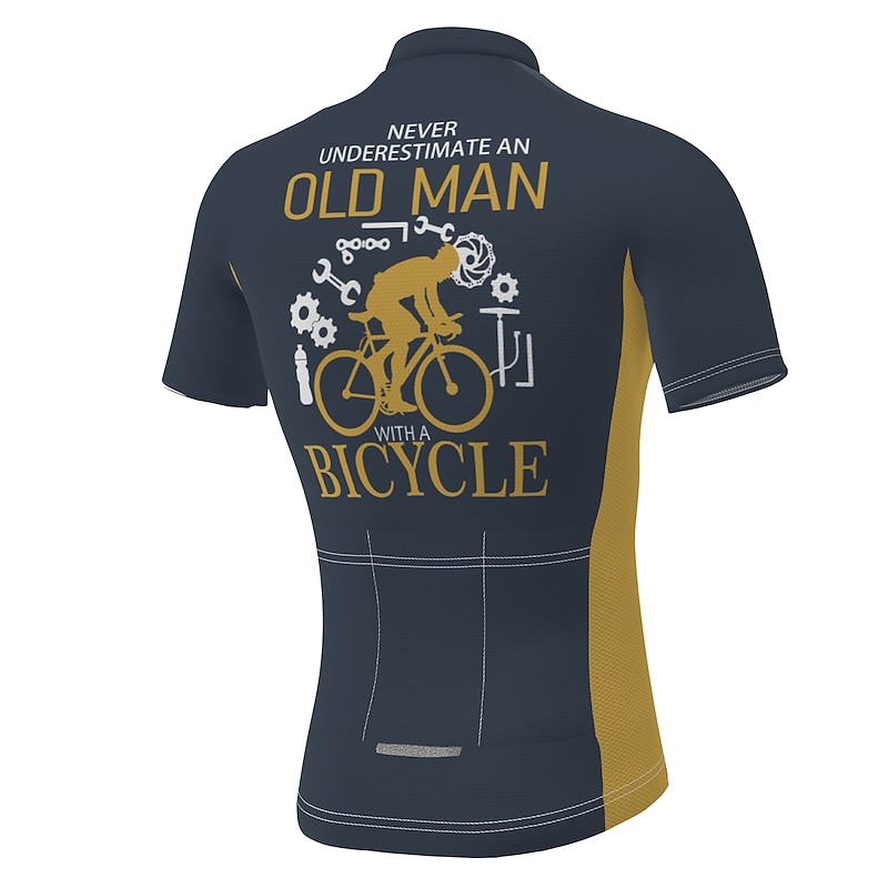 21Grams Old Man Men's Short Sleeve Cycling Jersey Summer Polyester Funny Bike Jersey Top Mountain Bike MTB Road Bike Cycling Breathable Quick Dry Moisture Wicking Blue+Orange Blue+Yellow Blue+Pink 25