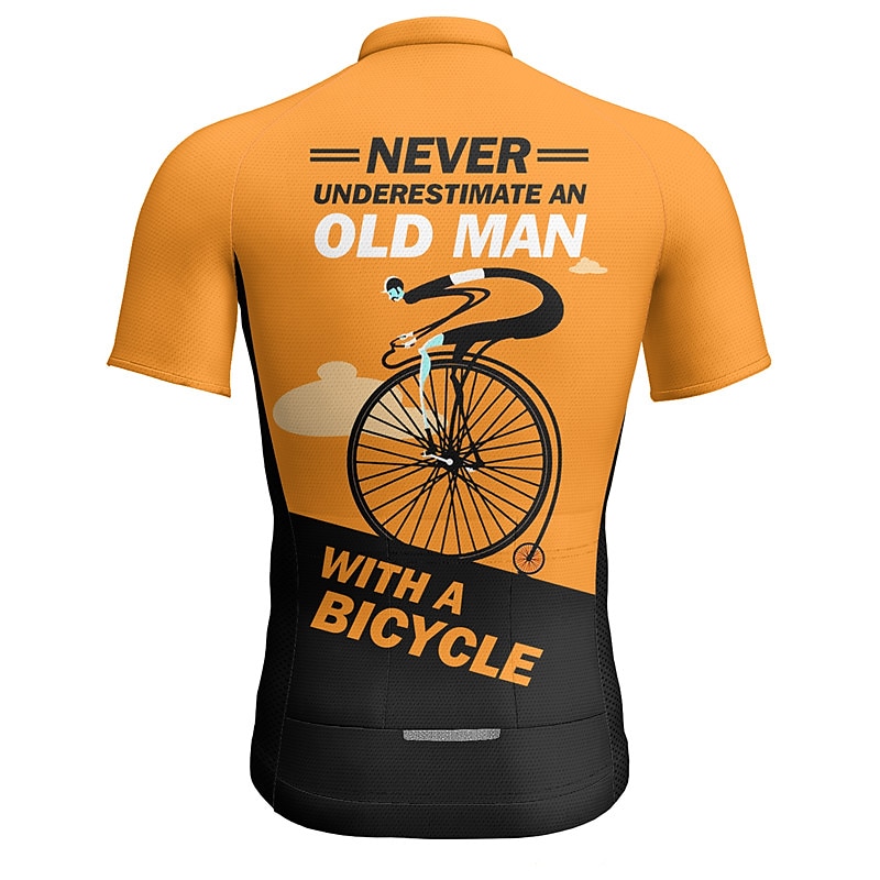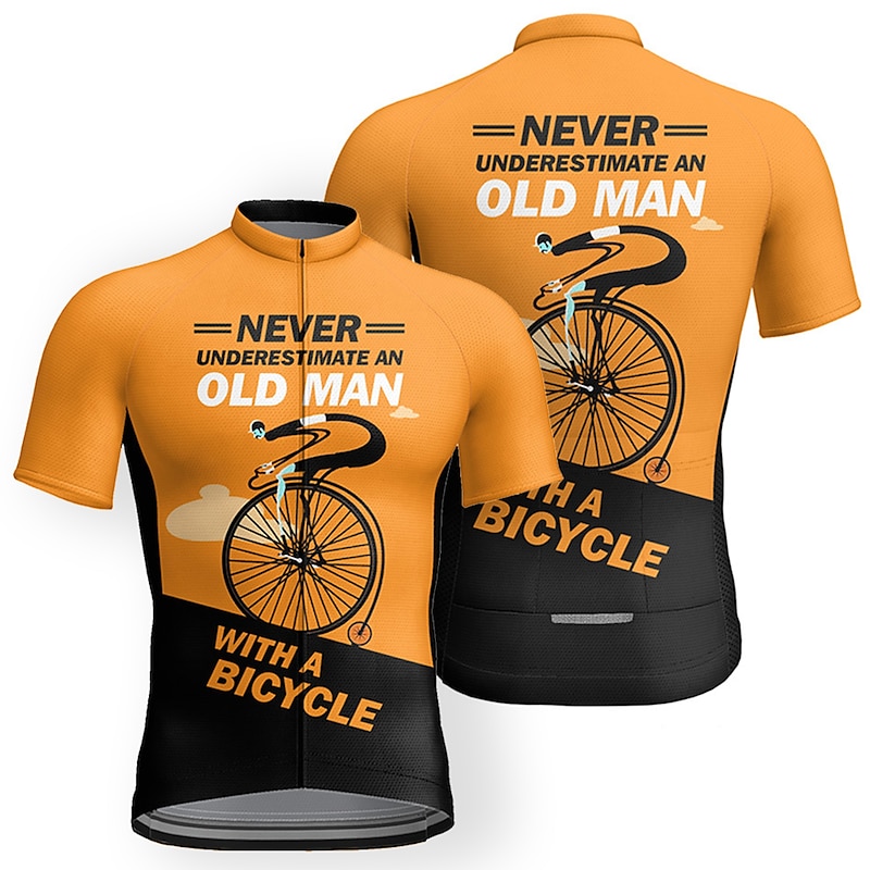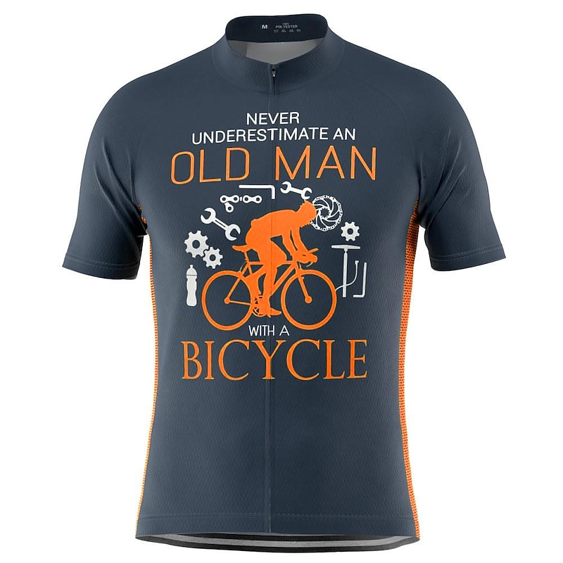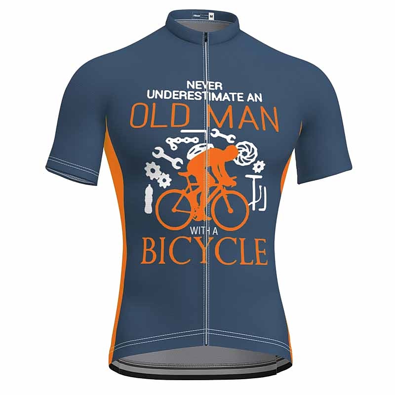 21Grams Old Man Men's Short Sleeve Cycling Jersey Summer Polyester Funny Bike Jersey Top Mountain Bike MTB Road Bike Cycling Breathable Quick Dry Moisture Wicking Blue+Orange Blue+Yellow Blue+Pink 43