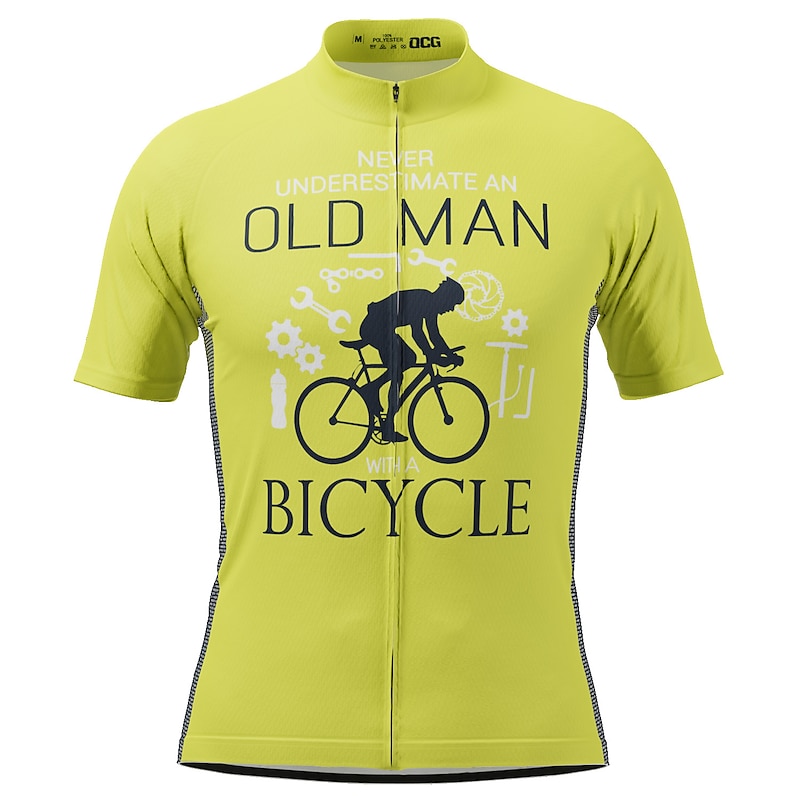 21Grams Old Man Men's Short Sleeve Cycling Jersey Summer Polyester Funny Bike Jersey Top Mountain Bike MTB Road Bike Cycling Breathable Quick Dry Moisture Wicking Blue+Orange Blue+Yellow Blue+Pink 53