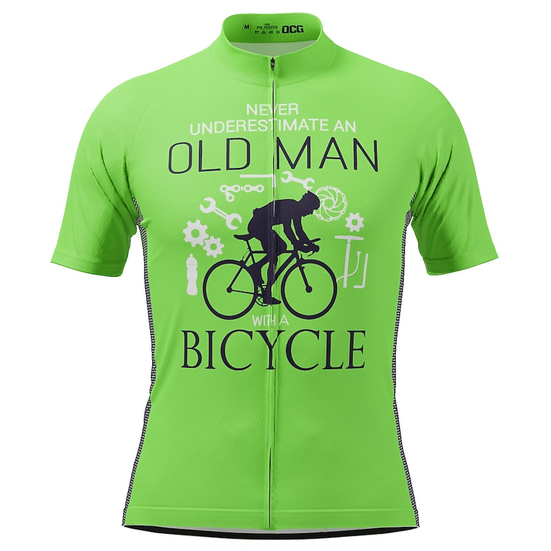 21Grams Old Man Men's Short Sleeve Cycling Jersey Summer Polyester Funny Bike Jersey Top Mountain Bike MTB Road Bike Cycling Breathable Quick Dry Moisture Wicking Blue+Orange Blue+Yellow Blue+Pink 27