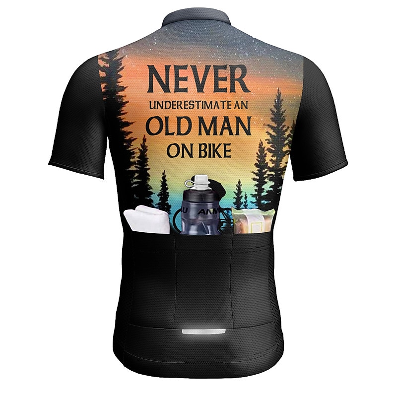 Highlights Product Selling Points: 1. 【3 Back Pockets】: Classic 3-pockets behind the cycling shirts to conveniently store essentials like wallet, maps, and snacks. 2. 【Breathable Wicking Highly elastic】: Made from high-quality polyester fabric with 80% polyester and 20% spandex, these cycling clothes have excellent moisture-wicking properties. They are also skin-friendly, breathable, and quick-drying, ensuring maximum comfort. The four-way stretchy crotch with high elasticity prevents fabric tearing and provides added flexibility. 3. 【Anti-slip Silicone】: The anti-slip elastic leg grippers and elastic silicone strap of the jersey keep it compressed and tight, preventing slipping during cycling. The compression fit provides increased mobility and muscle support. The flatlocked seams offer comfort and flexibility, even during long-distance cycling. 4. 【3D Thickened Protection Pad】: The gel padding inside and 3D thickened foam padding in these cycling shorts ensure a snug fit around the hips without slipping. This padding effectively protects the hipbone from injuries. 5. Gender: Men's 6. Elasticity: Stretchy 7. Occasion: Athletic 8. Function: Quick Dry 9. Function: Moisture Wicking 10. Pattern: Graphic 11. Pattern: Old Man 12. Discipline: Mountain Bike MTB 13. Discipline: Road Bike Cycling