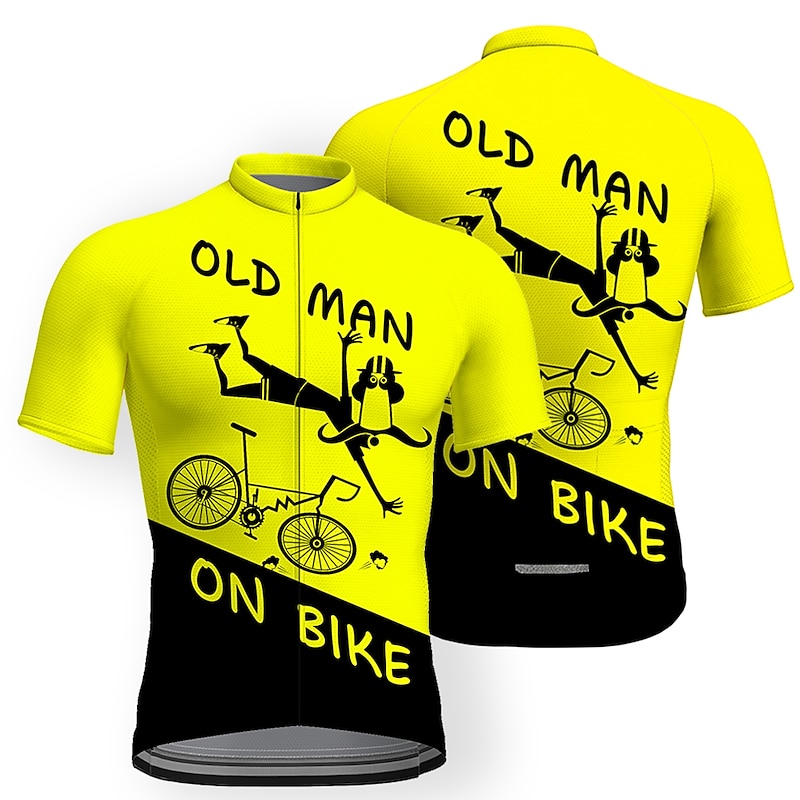 21Grams Old Man Men's Short Sleeve Cycling Jersey Summer Polyester Funny Bike Jersey Top Mountain Bike MTB Road Bike Cycling Breathable Quick Dry Moisture Wicking Blue+Orange Blue+Yellow Blue+Pink 17
