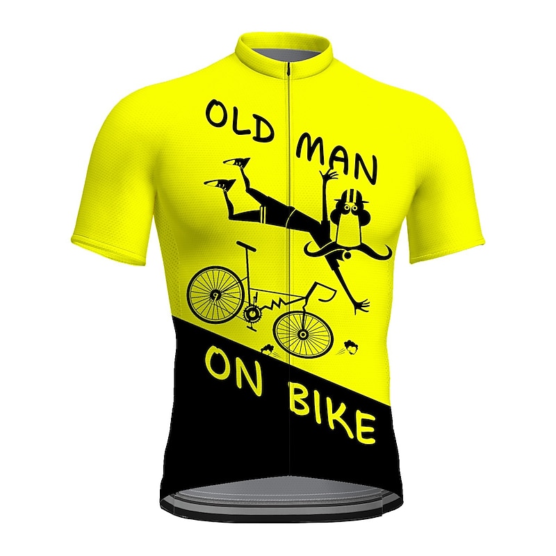 21Grams Old Man Men's Short Sleeve Cycling Jersey Summer Polyester Funny Bike Jersey Top Mountain Bike MTB Road Bike Cycling Breathable Quick Dry Moisture Wicking Blue+Orange Blue+Yellow Blue+Pink 49