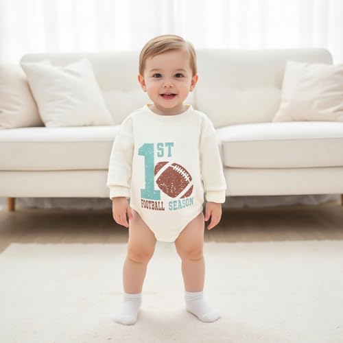• Feature: Baby boy football bodysuit, sweatshirt bubble romper baby boy, baby boy romper, oversized baby boy football romper. Baby boy football bodysuit features football/ “1st football season” letter print, crewneck, snap button to easy diaper change