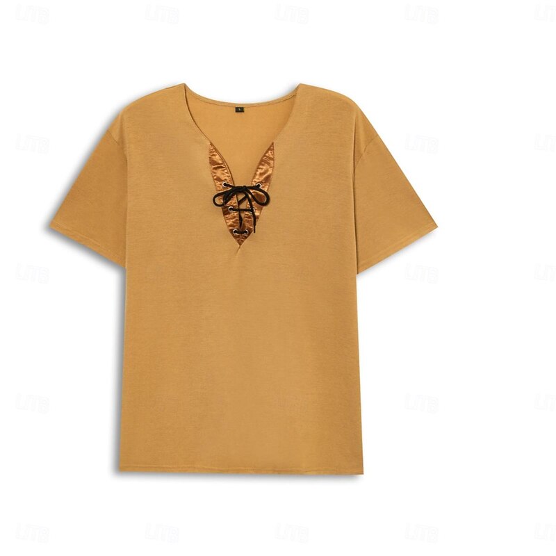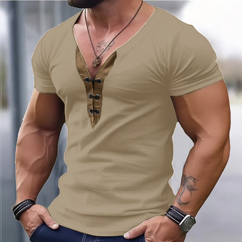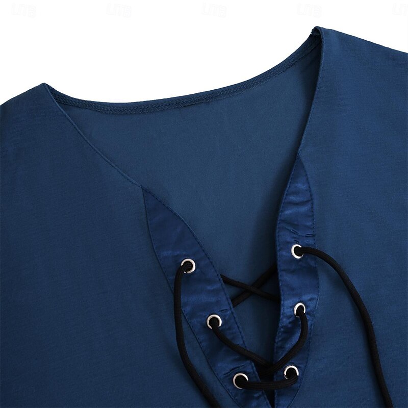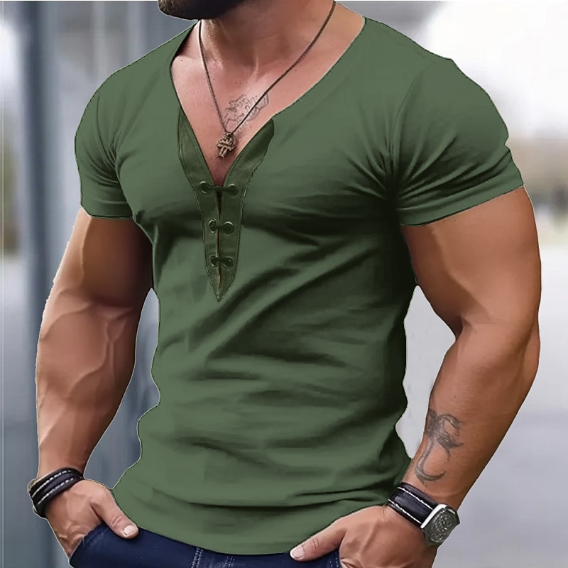 More information about Men's T Shirt Tee Top Long Sleeve V Neck Spring & Summer Plain Fashion Designer Basic Lace up Vacation Street Going out Black Blue Green Top Tee for Men