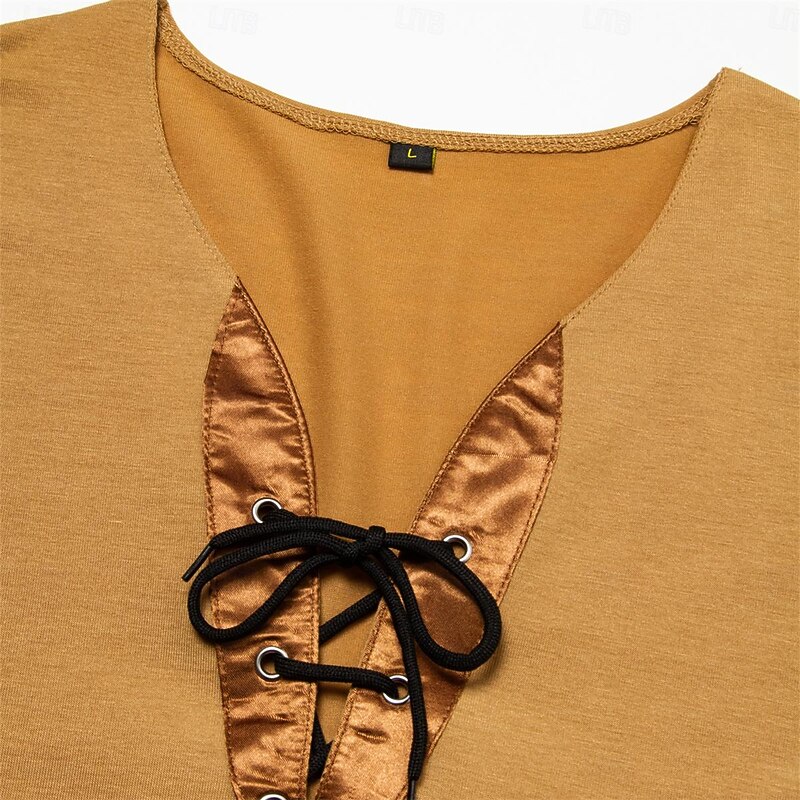 Men's T Shirt Tee Top Long Sleeve V Neck Spring & Summer Plain Fashion Designer Basic Lace up Vacation Street Going out Black Blue Green Top Tee for Men 6
