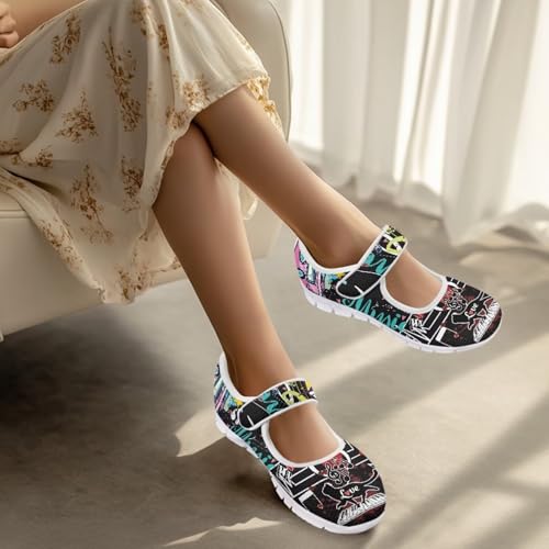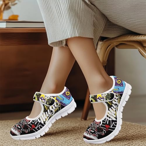 JoyLamoria Aztec Running Horse Walking Shoes Stylish Strap Mary Jane Shoes Adjustable Barefoot Shoes Womens US 4-9 4