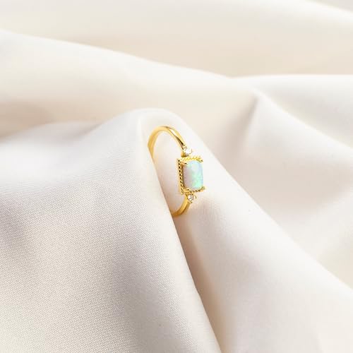Dainty Opal Engagement Ring – Sterling Silver or Gold, October Birthstone Solitaire Ring with Side Stones, Anniversary & Birthday Gift for Women 6