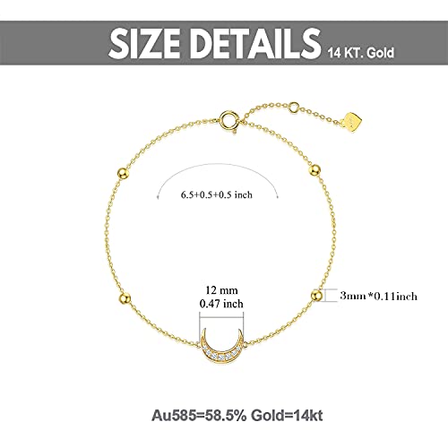 HOT ! 14K Gold Crescent Moon Diamond Bracelet for Women, Adjustable 6.5+1+1 Inch - Delicate Charm Jewelry