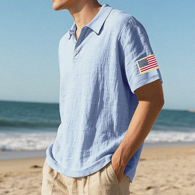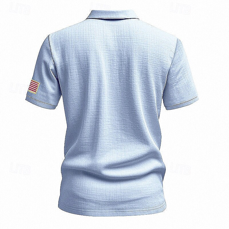 More information about Men's Linen Shirt Golf Shirt Work Casual Lapel Short Sleeve Vacation Fashion National Flag Buttons Summer Regular Fit Black White Navy Blue Khaki Army Green Light Blue Linen Shirt