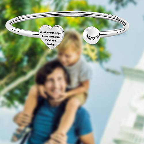 • ◆Daddy Memorial Gift Bangle◆This bangle hand stamped with the words”My Guardian Angel Lives in Heaven I Call Him Daddy”.This dad memorial bracelet represents the missing for dad,a memorial gift for her.