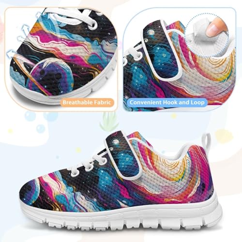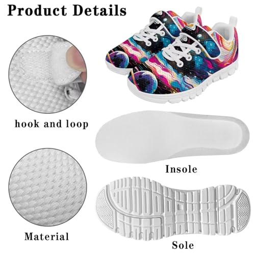 Boys Girls Sneakers Kids Breathable Lightweight Strap Tennis Athletic Running Shoes White Sole Galaxy Space Pattern 5