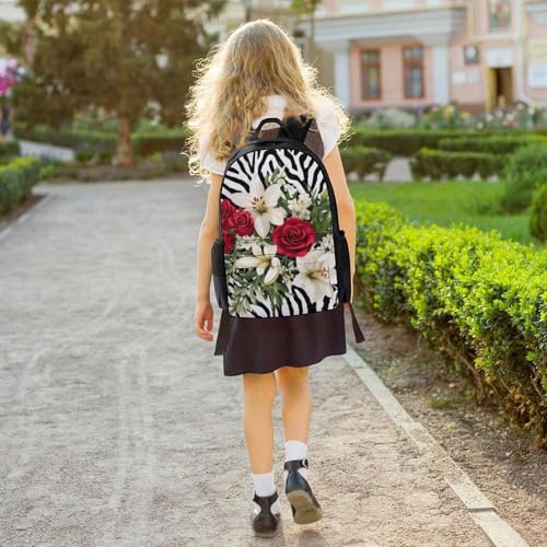 Supdreamc Cheetah Leopard Zebra Print Floral Black And White Rucksacks Lightweight Multipurpose Anti-Theft Shoulder Bag Big Capacity Traveling & Camping Backpack With Side Pockets 5