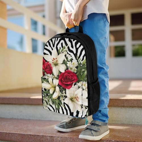 Supdreamc Cheetah Leopard Zebra Print Floral Black And White Rucksacks Lightweight Multipurpose Anti-Theft Shoulder Bag Big Capacity Traveling & Camping Backpack With Side Pockets 4