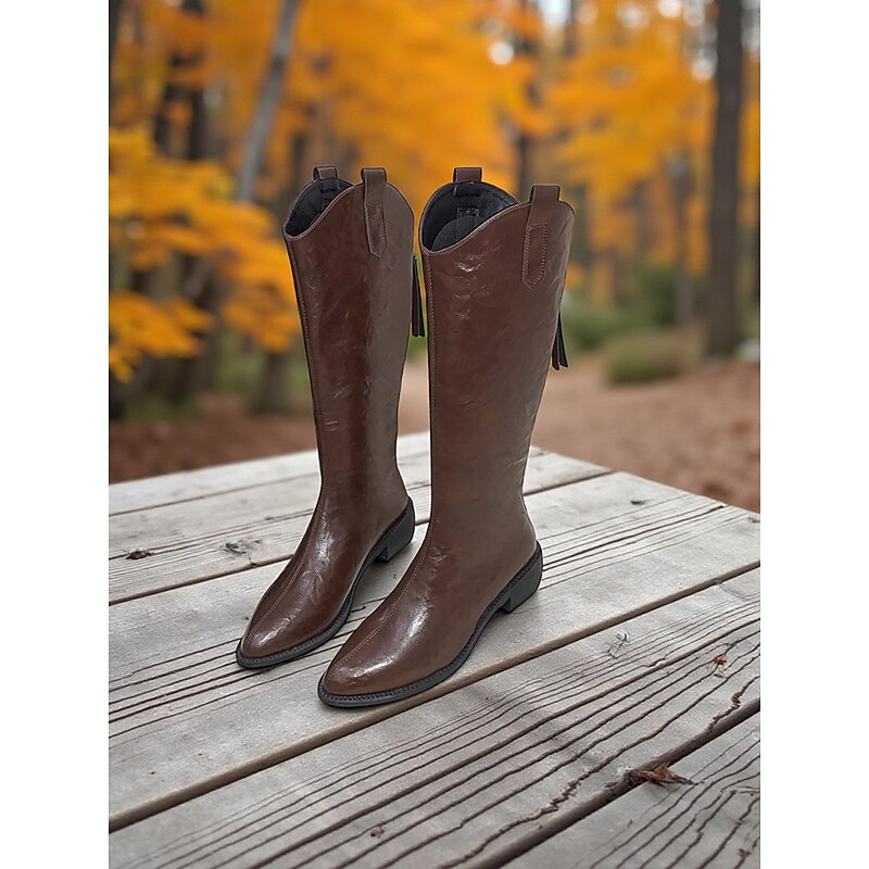 Women's Knee-high Riding Boots with Pull Tabs, Low Heel Comfortable Slip-On Design, Classic Western Inspired Style Fashion Shoes for Urban Casual Wear 6